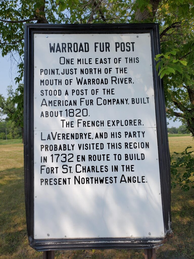 Marker location: Lake Street and Hwy 11. One miles east of this point just north of the mouth of the Warroad River stood a post of the American Fur Company built around 1820. The French explorer L...
