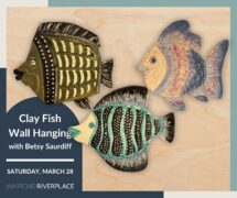 Create a one-of-a-kind clay fish wall hanging in this workshop led by Betsy Saurdiff, a recognized potter whose work has been featured in the RiverPlace gallery. In this hands-on session, you’ll design and shape your own fish from a clay slab, explore texture and pattern, and apply vibrant underglazes to bring your piece to life. You’ll also learn the art of sgraffito—carving through layers of color to reveal striking designs beneath the surface.