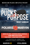 The 2nd Annual Marvin vs. Polaris charity hockey game, Pucks with a Purpose will take place at The Gardens Arena in Warroad on Friday, March 20. This year’s event will feature two games with players representing both companies from across the upper Midwest.